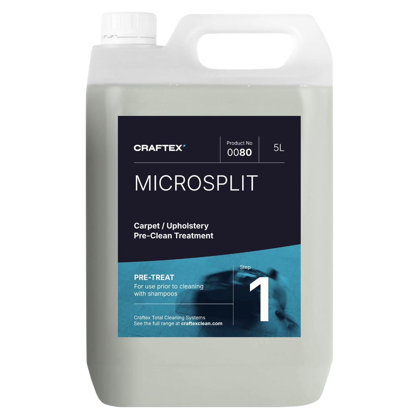 Craftex MICROSPLIT is a superb formulation designed for use as a spot cleaner or pre-spray before cleaning carpets and upholstery.
