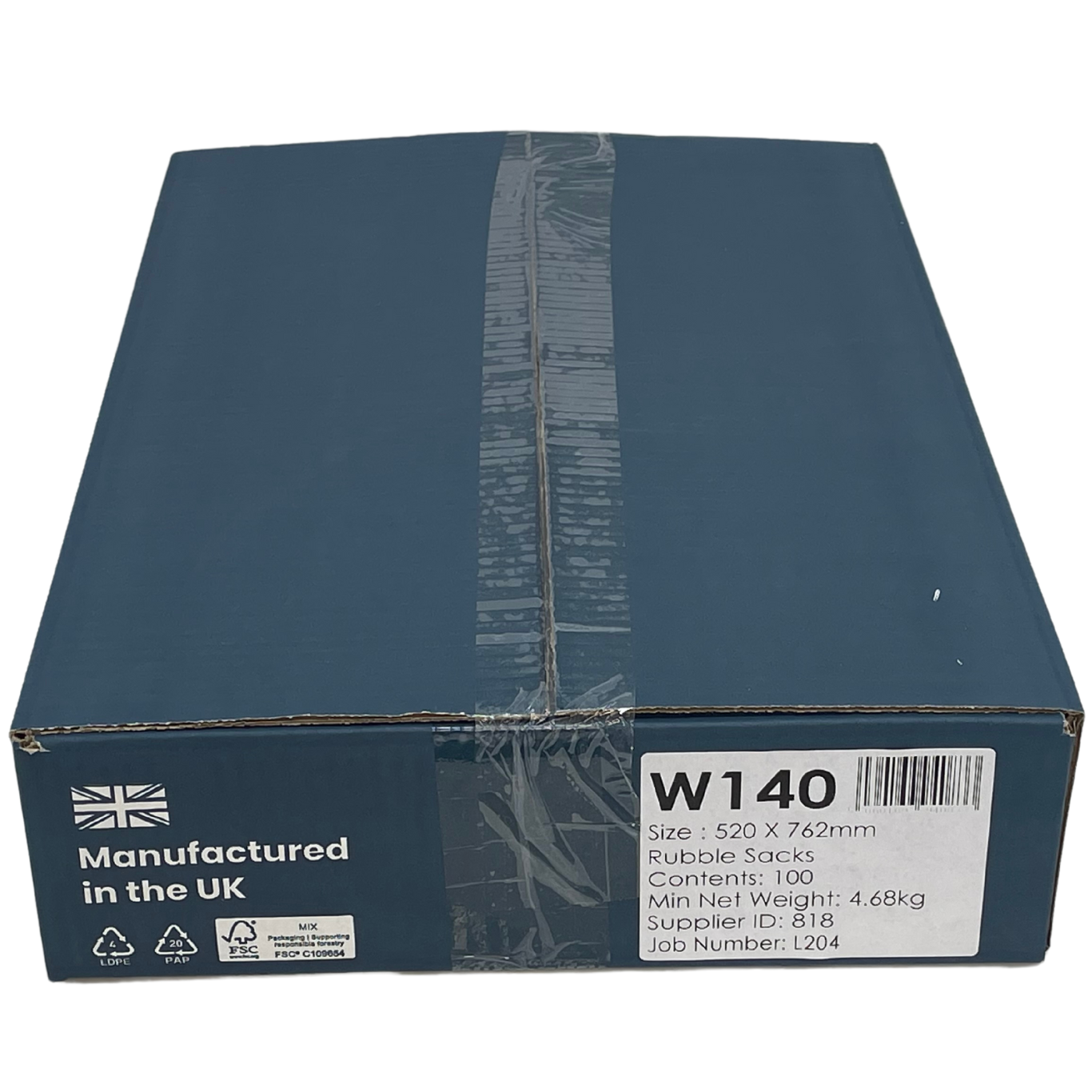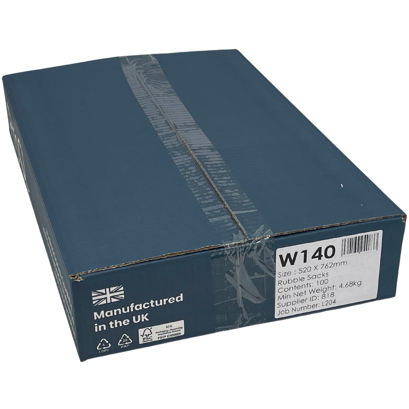 RUBBLE SACKS are supplied flat-packed in a box of 100 and measure 520mm x 762mm.