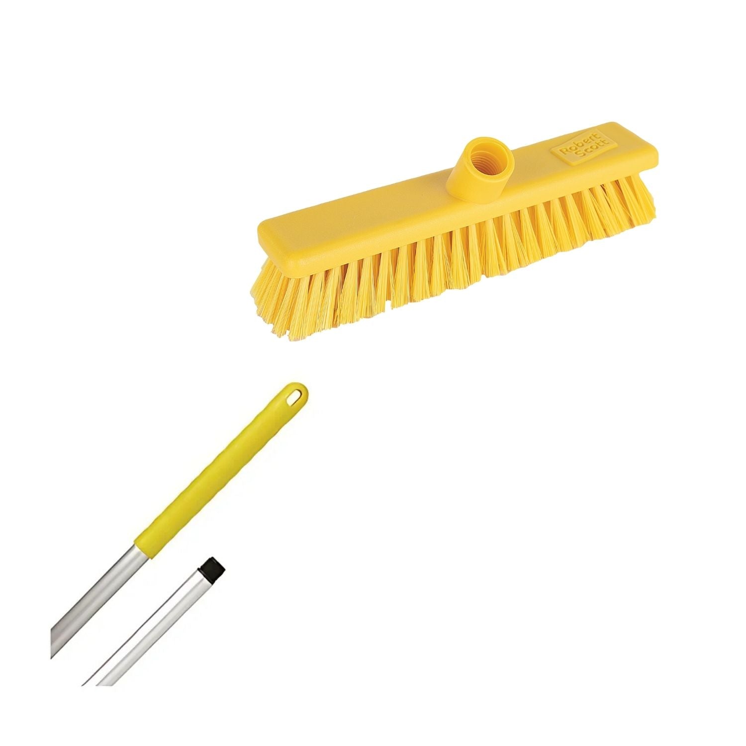 The ABBEY STIFF BROOM is a plastic composite stock with stiff plastic bristles, which is washable up to 100°C.