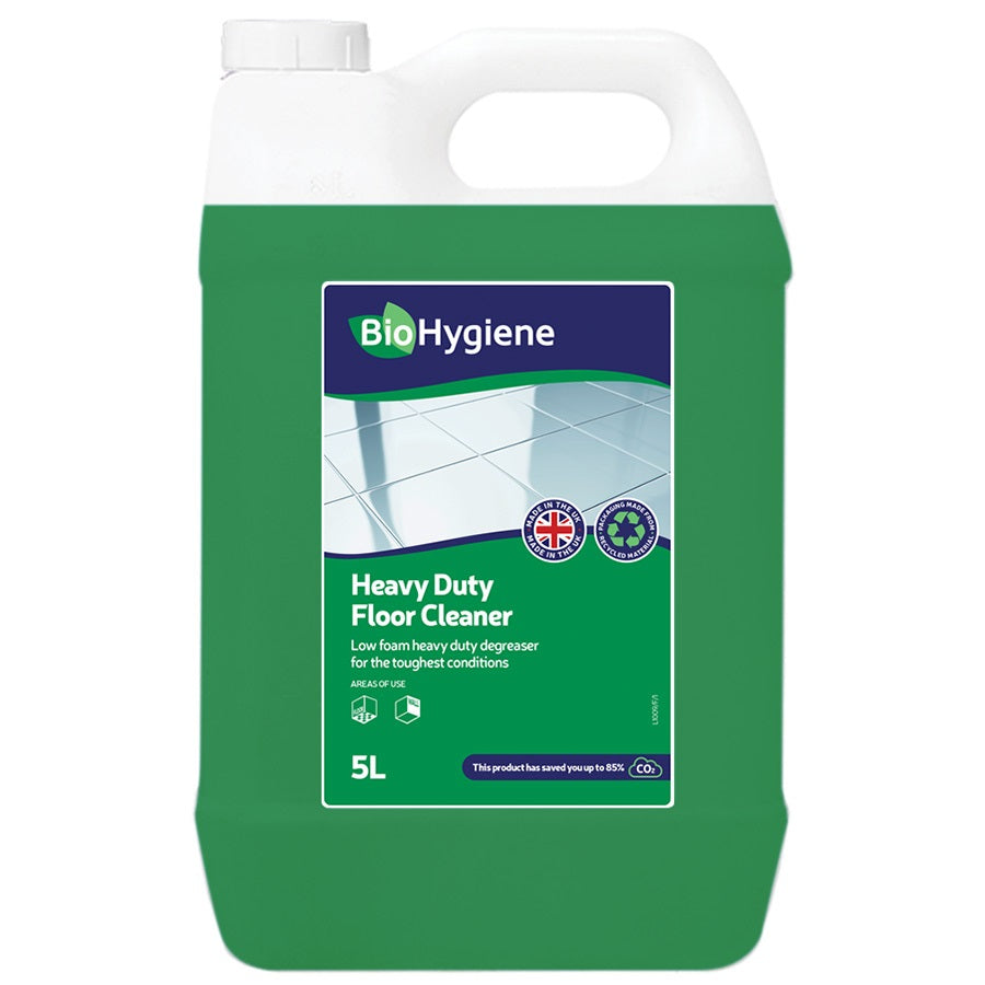 BioHygiene Heavy Duty Floor Cleaner 5L is a highly concentrated eco-friendly cleaner and degreaser that quickly cuts through grease and grime to leave all water-resistant, unprotected floors clean and sparkling. This heavy-duty floor cleaner is developed with industrial grease management biotechnology that cleans without leaving streaks and residue. BioHygiene products are designed to reduce CO2 emissions, aquatic and human toxicity.