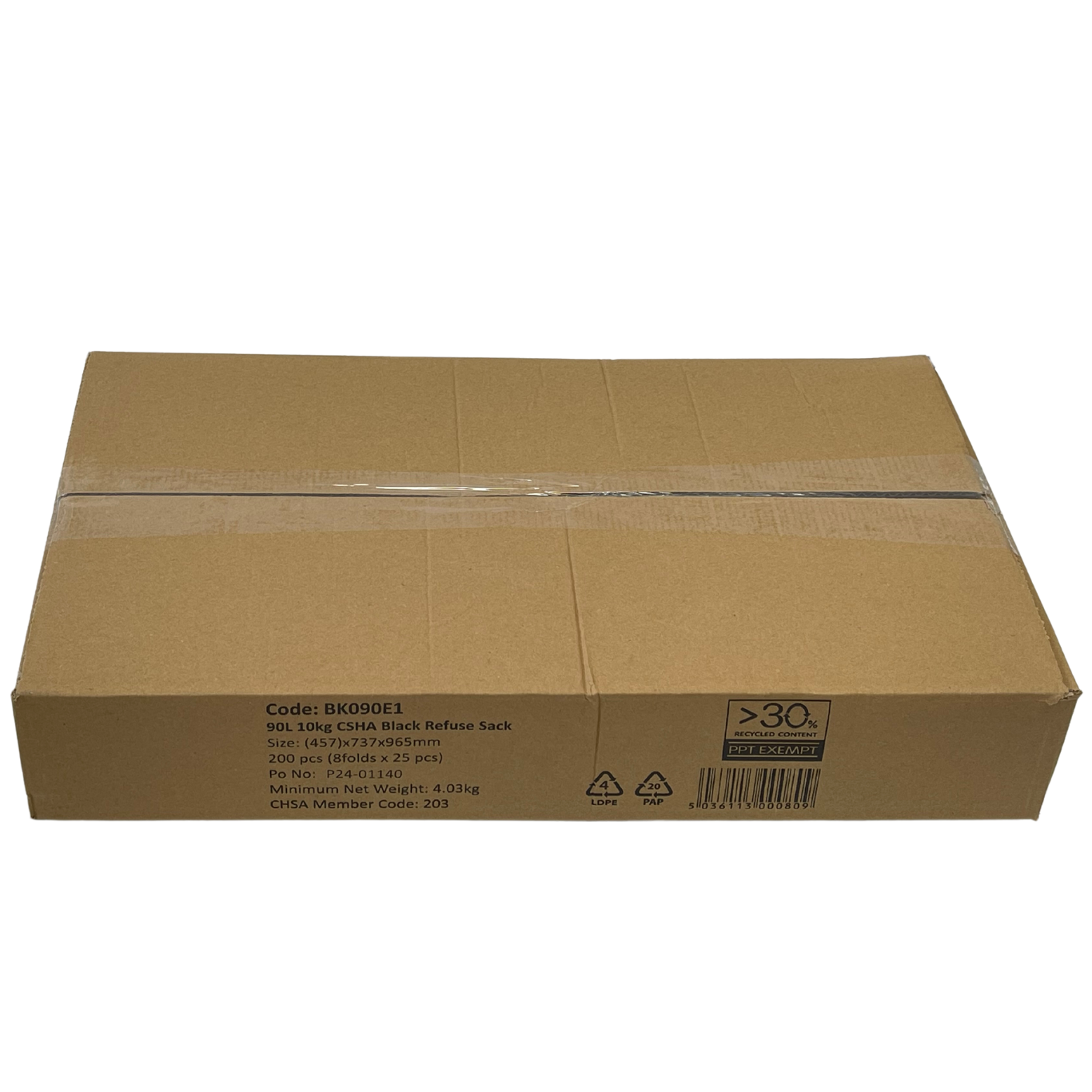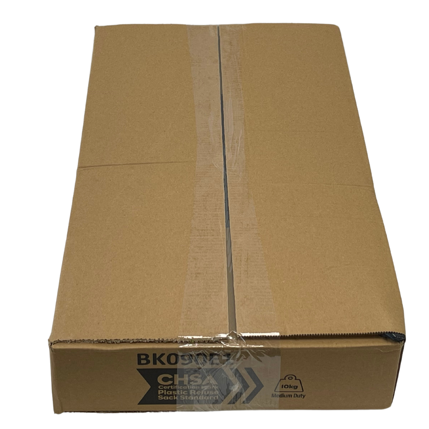 10kg MEDIUM-DUTY BLACK REFUSE SACKS are CHSA-accredited, and are ideal for general household, catering and janitorial use. They are our best-selling refuse sack. Packed in 8 bundles of 25 sacks, 200 per case, the BLACK REFUSE SACKS measure 457x737x965mm and are supplied flat-packed. Product Code: W012/STD