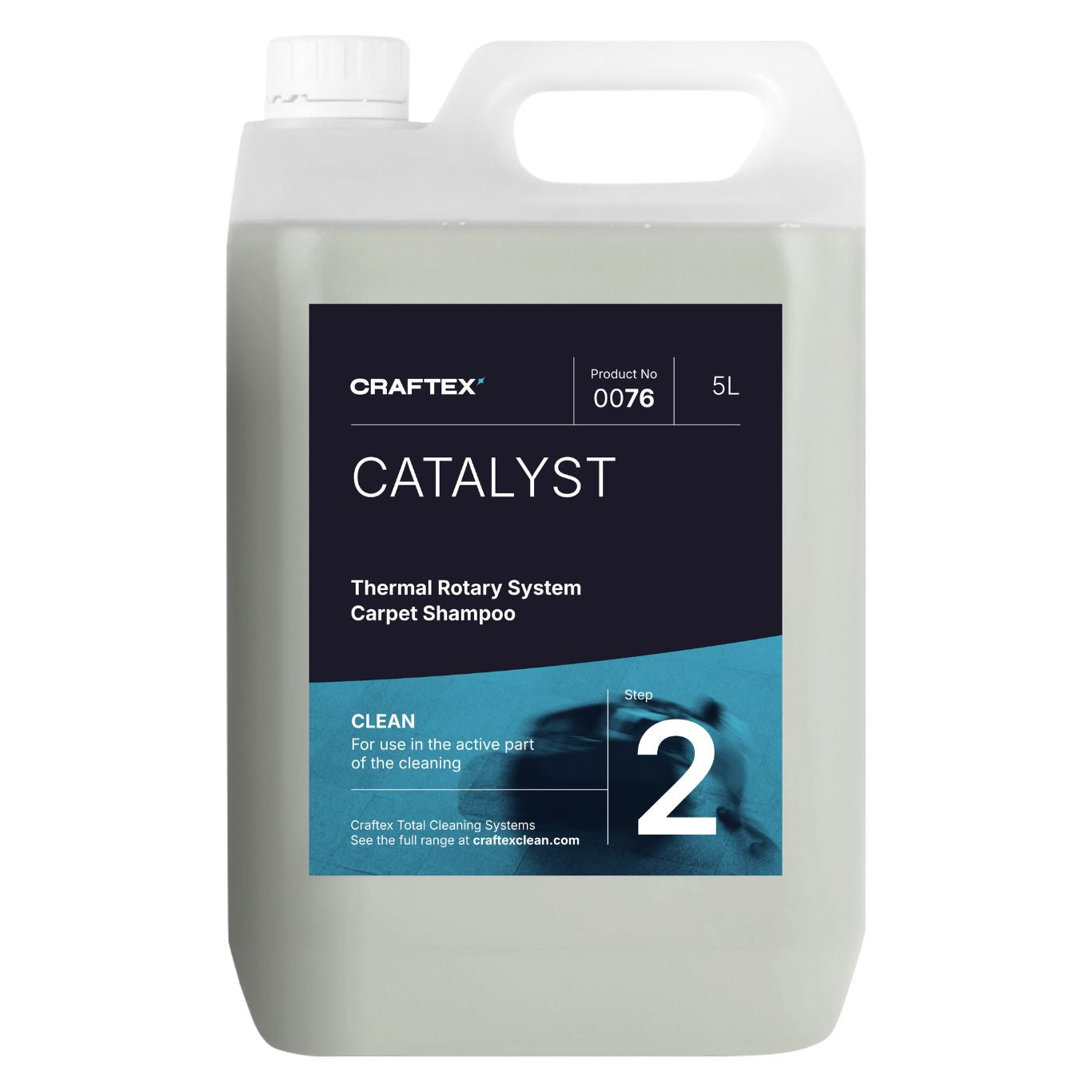 CRAFTEX CATALYST is a neutral pH carpet cleaner for use with a thermal rotary machine. It cleans, disinfects and deodorises, leaving a fresh, neutral orange fragrance.