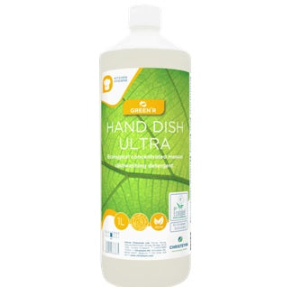 Green'R Hand Dish Ultra is to be used to wash by hand glassware, dishes, crockery, cutlery, pots, pans, kitchen utensils and so on.