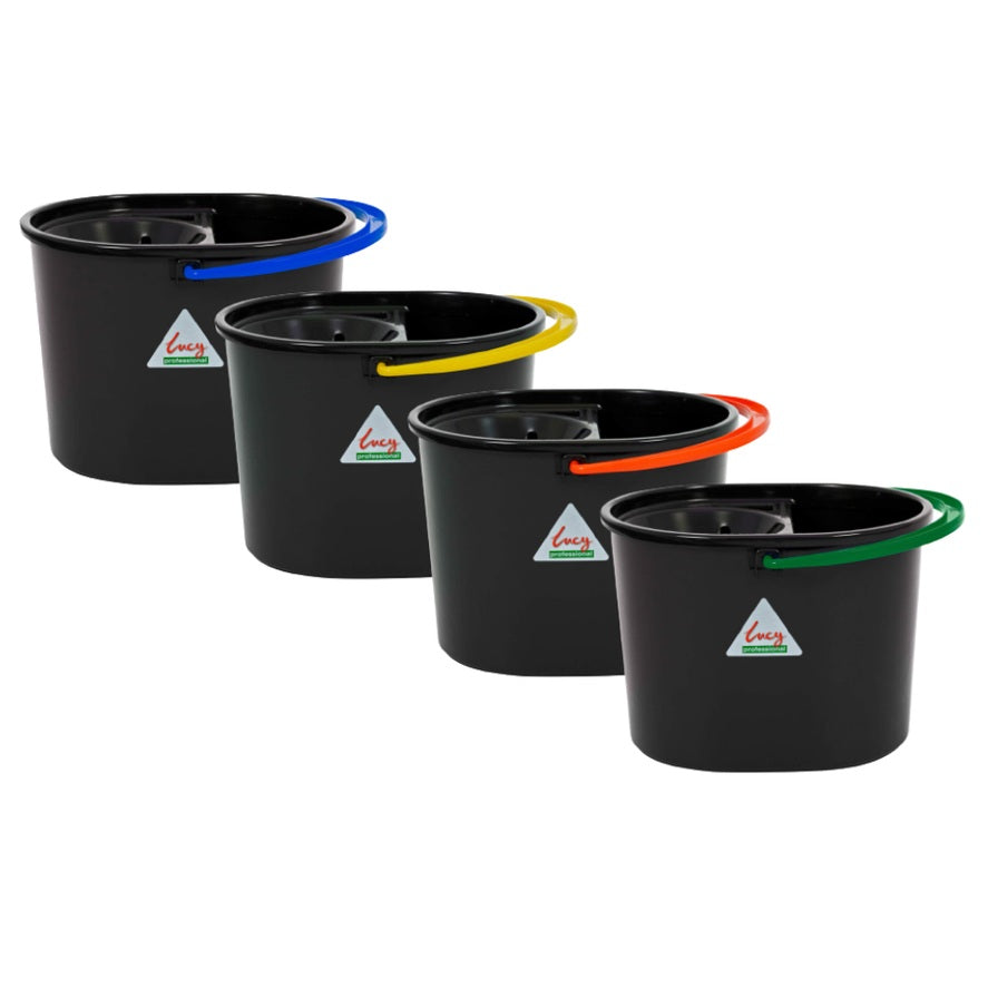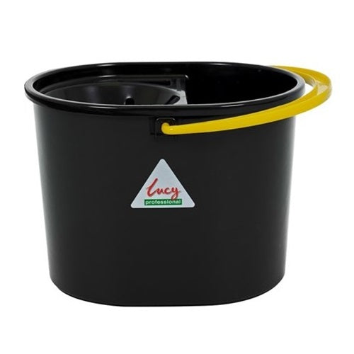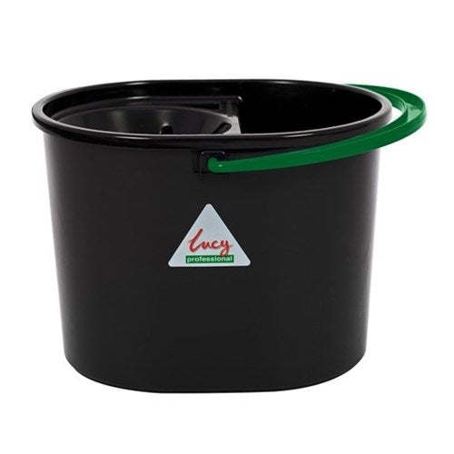 Lucy-R Oval Mop Bucket is a tough bucket made using recycled plastic and comes complete with a black sieve to wring out socket style mop heads. The bucket is extra tough and the sieve easily clips on and off.