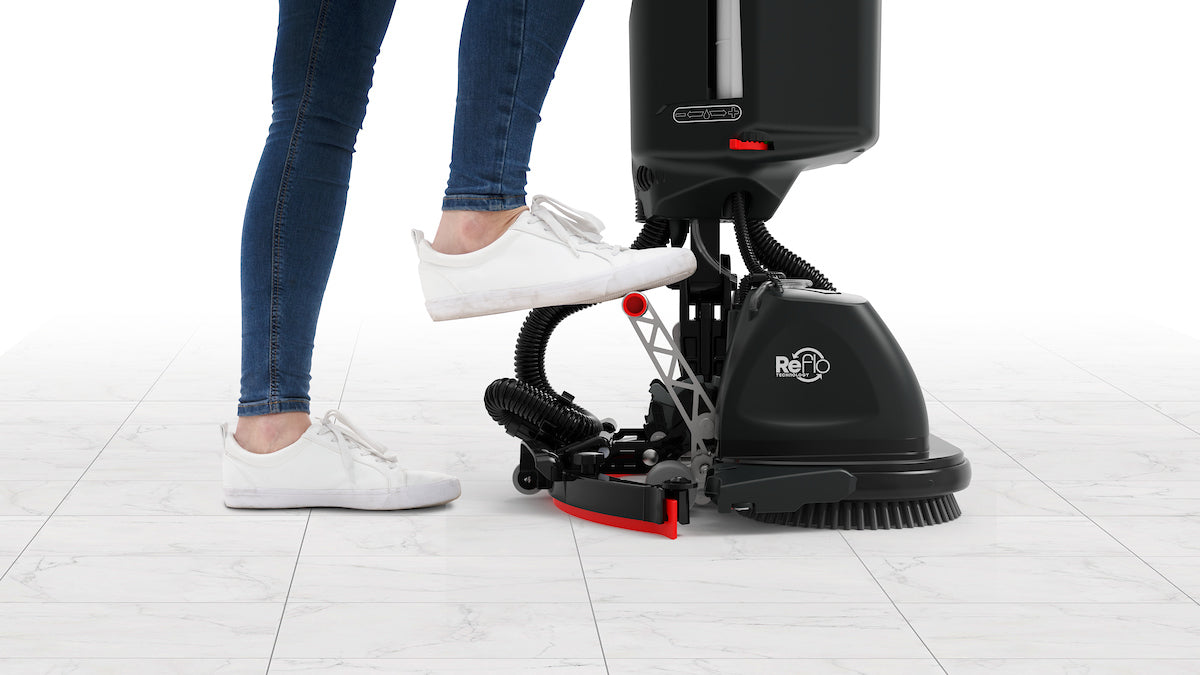 - Foot-operated floor tool eliminates frequent bending for operator.