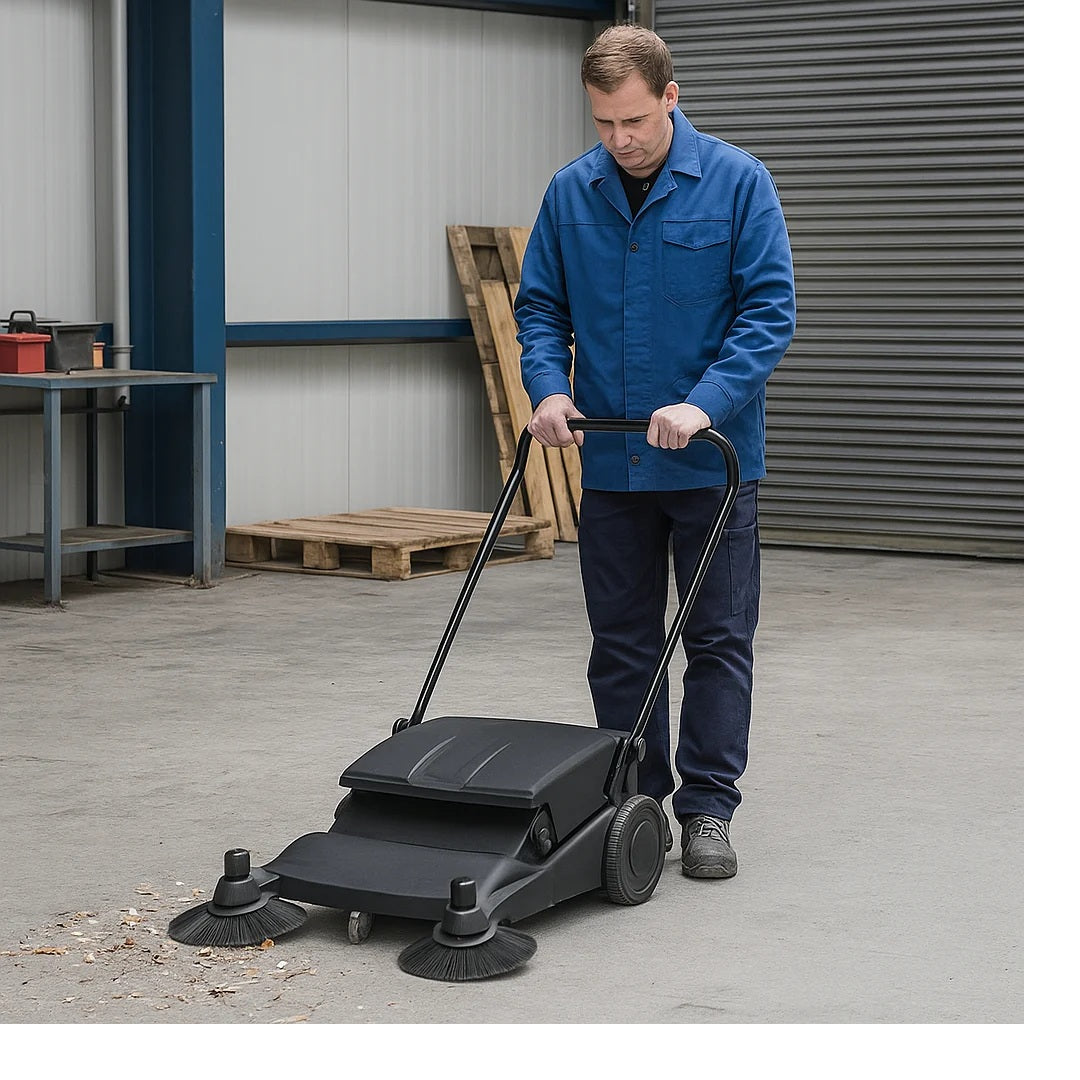 The Numatic NU3 Manual push sweeper can be used for for small areas indoors and outdoors.