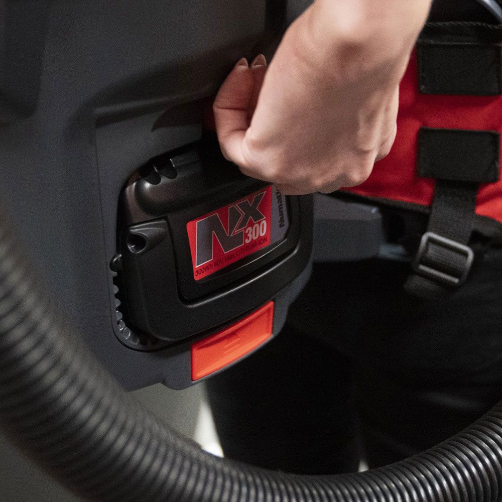 Numatic RSB150 1NX Commercial Backpack Battery Vacuum Cleaner 5 Litres 36v is equipped with Numatic's new NX300 36V Battery Technology and 350W digital brushless motor.