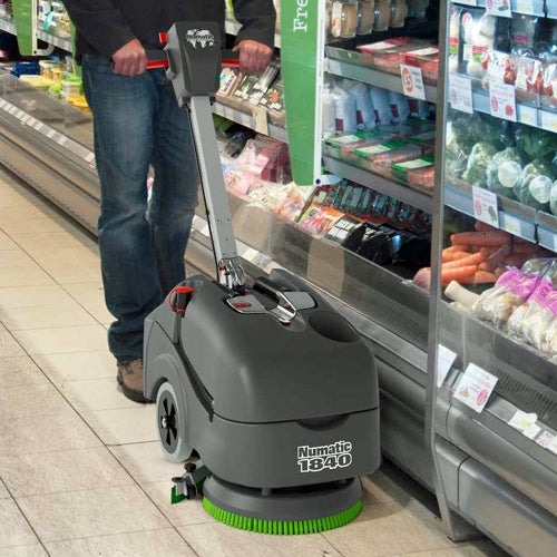 The Numatic TT1840, mains scrubber dryer has been designed to address the question of size being exceptionally compact, yet with performance equal to bigger machines.