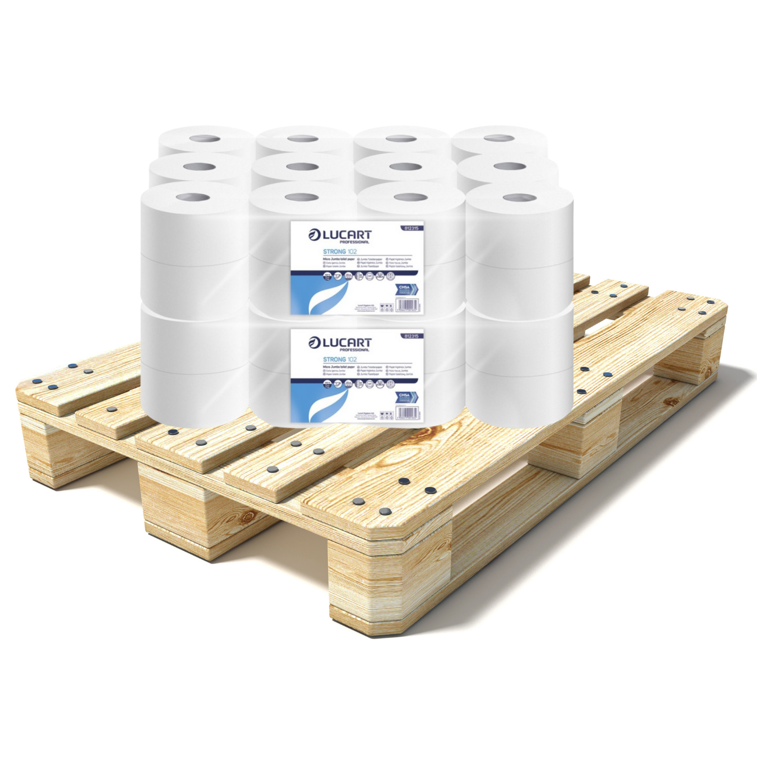 Lucart Strong 102 812315 are Micro Jumbo Toilet Rolls made from pure pulp (no recycled material). They are 2ply, 125m in length with a 42mm core and come in packs of 24 rolls, 55 packs per pallet. They deliver exceptional softness and strength, ensuring a high-quality experience every time for use in offices, hotels, restaurants, and other high traffic washrooms.