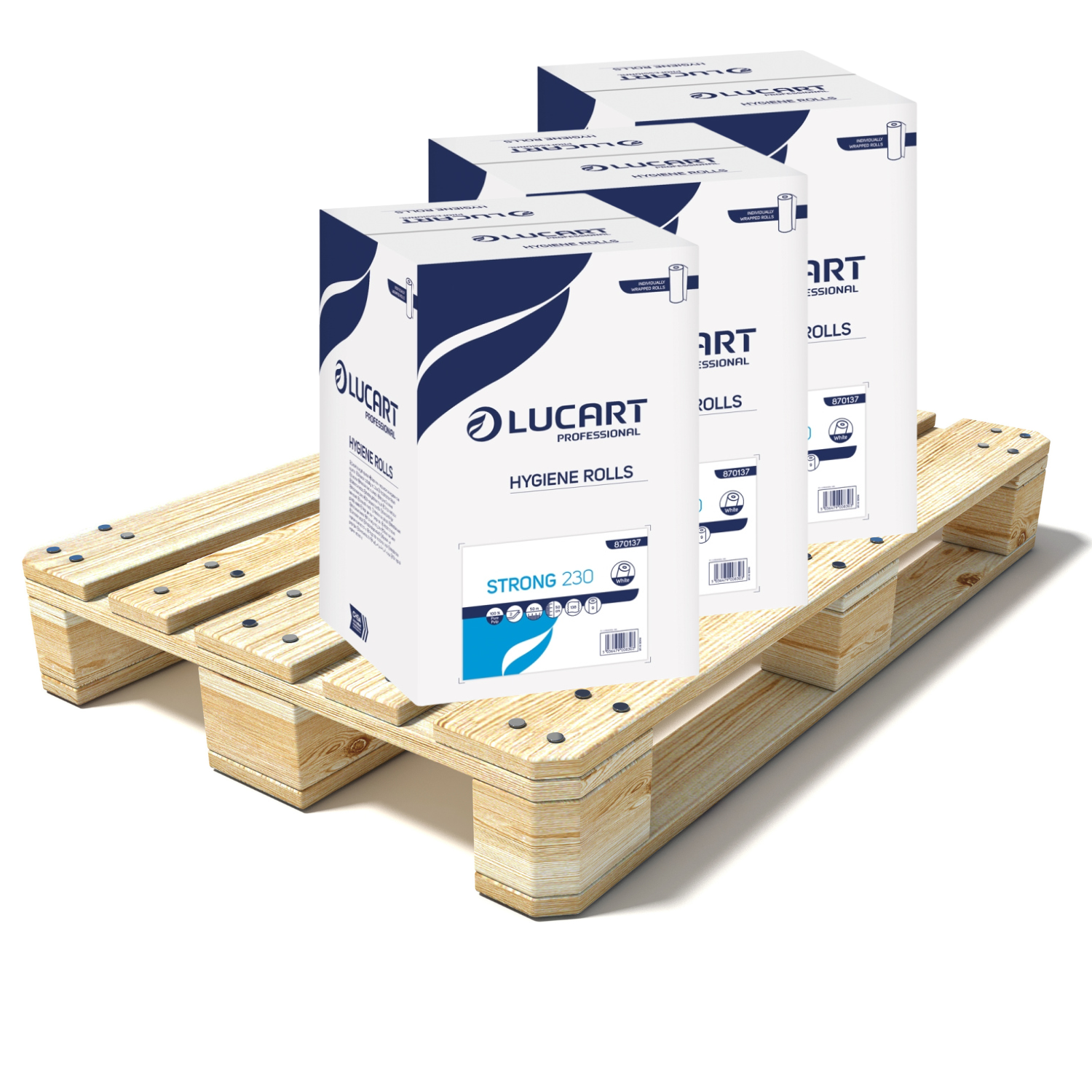 Lucart Strong 230 870137 are Hygiene Rolls made from pure pulp (no recycled material). They are 2ply, 50m in length with a 45mm core and come in cases of 9 rolls, 36 cases per pallet. They ensure high-quality strength and absorption every time when keeping patient examination benches hygienic in healthcare and treatment areas clean in the beauty industry.