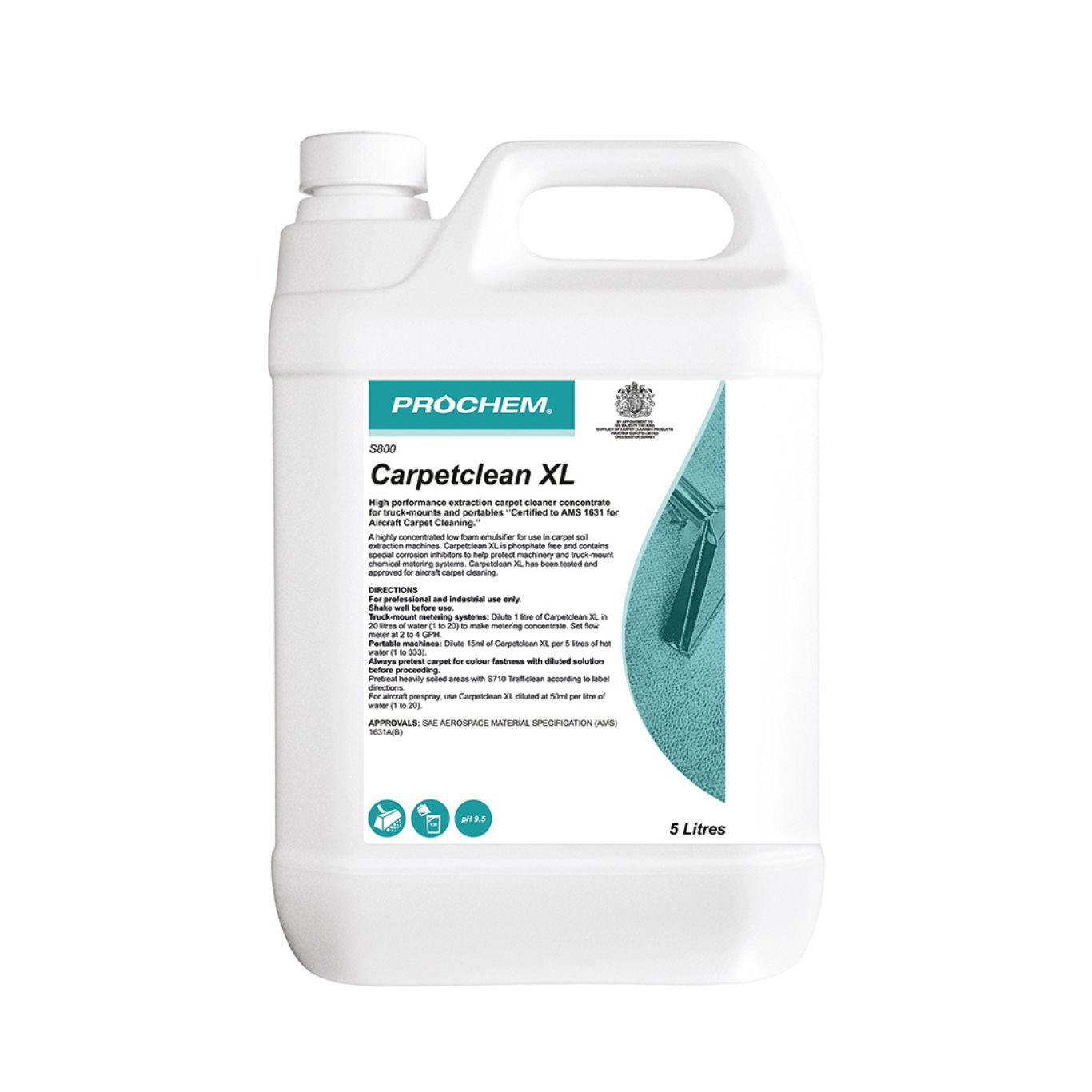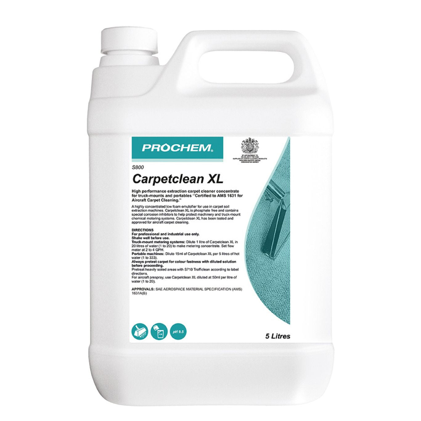 CARPETCLEAN XL is SAE AEROSPACE-approved and certified to AMS1631A for cleaning aircraft carpets.