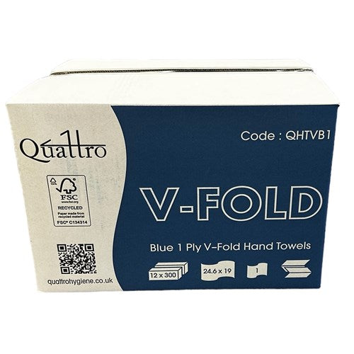 Quattro Blue V-fold 1ply Hand Towels 12x300 (QHTVB1)