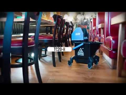 The TC20-R Wringer slots easily and clicks firmly into the BUCKET. It features a strong stainless steel vertical lever for wringing Kentucky-style and flat mops, and a metal handle with a plastic grip for comfort.