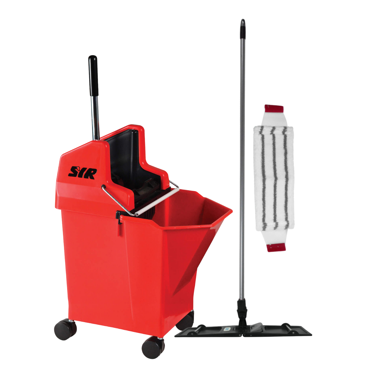 The SYR Flat Mopping Kit is the perfect choice for flat mopping. The SYR Duo Press bucket is a heavy duty, moulded plastic bucket, which is highly portable and ideal for small to medium areas. The bucket has a 15 litre capacity and 2” castors.