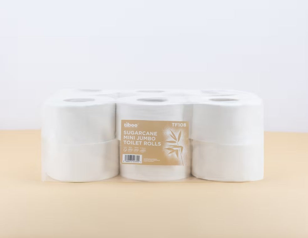 Tiboo Sugarcane Mini Jumbo 2 Ply Toilet Rolls 12x150m