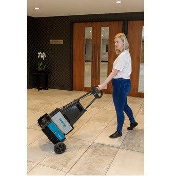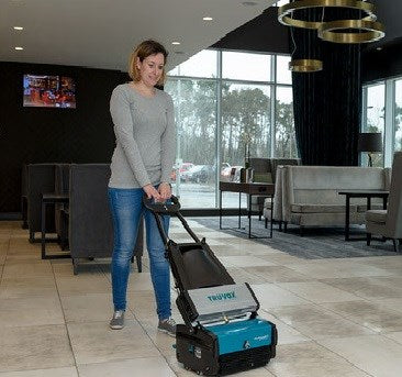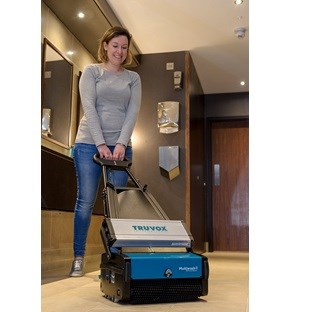 The Truvox BATTERY 340 Pump Multiwash II Scrubber Dryer is a high-speed, multi-purpose, battery-operated floor machine which mops, scrubs, washes and dries a variety of hard and soft floor surfaces in a single pass. It is ideal for use on problem floors such as non-slip, shallow pile carpets, entrance matting and escalators/travelators.