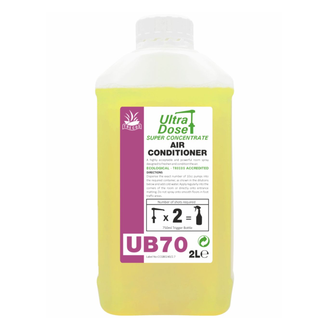 DIRECTIONS FOR USE: Dilute 2 shots of UB70 AIR CONDITIONER in a 750ml trigger spray, and for most effective use spray into corners of the room and onto entrance mats. Avoid paperwork and computer equipment.