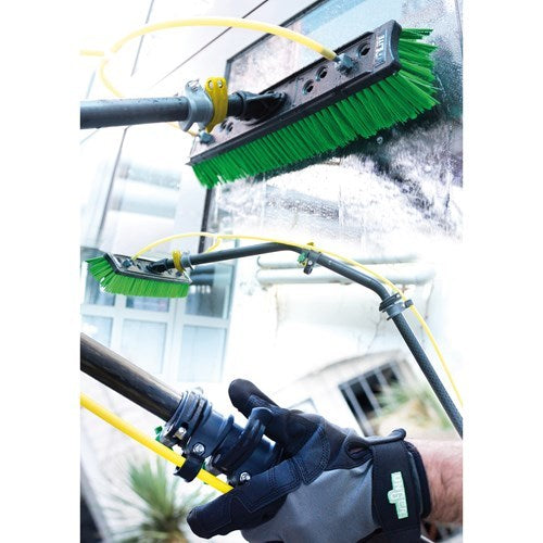 The HIFLO NLITE WATER FED POLE system is ideal for cleaning windows, solar panels, building facades and signage, and large vehicles. Its material grade composites offer perfectly balanced light weight, rigidity and durability - all grades are compatible to be used in combination with each other. The lowest segment of the master pole is optimized at 35mm width for comfort and ease of use.