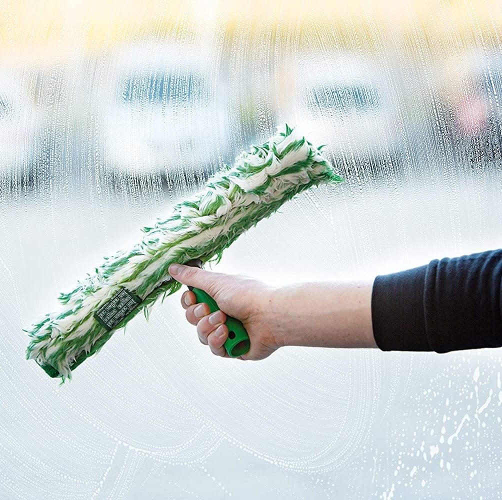 The Monsoon washer attaches securely to a compatible T-bar handle using a hook-and-loop fastening system and can be used by hand or mounted on an extension pole to reach high or awkward areas. Designed for durability, the sleeve is machine washable up to 500 times, making it a long-lasting and cost-effective tool for professional window cleaners.