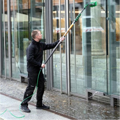 The UNGER nLITE system’s water-fed telescopic poles are of course also designed for smaller buildings or working from a cherry picker. From 0.90 metres to 6.00 metres in length, the poles are ideal for use at any worksite.