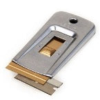 The UNGER SAFETY SCRAPER is a sturdy and durable metal scraper with a retractable blade for safety. It has a unique locking system to securely grip blades in the mechanism.