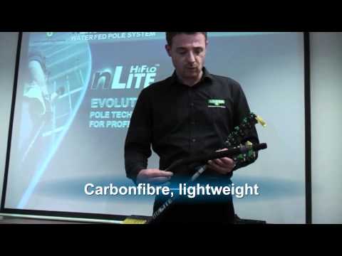 UNGER HIFLO NLITE WATER FED POLES are a system of professional, telescopic master poles available in 5 high-grade materials - aluminium, glass-fibre, hybrid, carbon and hi-mod carbon; extension poles can be added to the master pole to reach lengths of up to 20 metres without the need of a ladder.