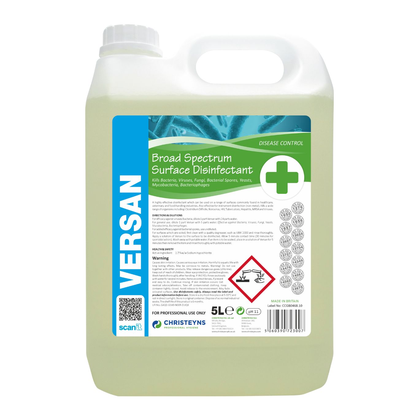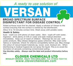 VERSAN Viricidal BROAD SPECTRUM SURFACE DISINFECTANT is a bactericide, fungicide, viricide and sporicidal which kills 99.999% of bacteria and is effective against C-Diff, norovirus, HIV/aids, tuberculosis, SARS, hepatitis, herpes, influenza and MRSA. It passes EN1276:1997 and BS-EN13704:2002.
