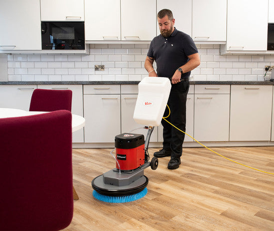 The Victor Contractor 400 Cordless rotary machine offers unbeatable value and performance across a variety of hard floor cleaning tasks including buffing, spray cleaning, scrubbing and bonnet mopping. This high speed (240rpm) machine comes equipped with a 400mm drive board, providing the flexibility to effectively carry out most hard floor cleaning tasks. With fast charge times and long runtime the Contractor Cordless is perfect for daytime cleaning where trailing cables could cause a trip hazard. The Contractor Cordless features a lockable, changeable battery, making it ideal for cleaners who require long runtimes and offering the ability to charge multiple batteries. The lower profile extended base allows users to clean effectively beneath overhanging shelving, tables, hospital beds and other low-level furniture.