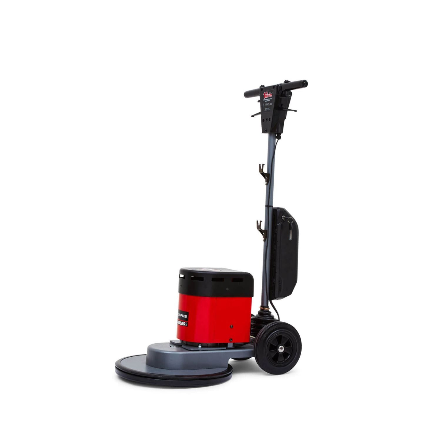 Ideal for users who require a rotary floor tool for multiple different uses, but do not want the cost of maintaining multiple machines. The Victor Multispeed Cordless can effortlessly switch between different speed settings at the flick of a switch. – Slower speeds (180RPM) for scrubbing and higher speed (400RPM) for polishing. With fast charge times and long runtime the Multispeed Cordless is perfect for daytime cleaning where trailing cables could cause a trip hazard. The Multispeed Cordless also features a lockable, changeable Lithium battery, making it ideal for operatives who require long runtimes and offering the capability to charge multiple batteries. A CentreFlex drive board is included with the machine, allowing for quick and easy attachment of the correct pad to suit the user’s specific cleaning requirements.