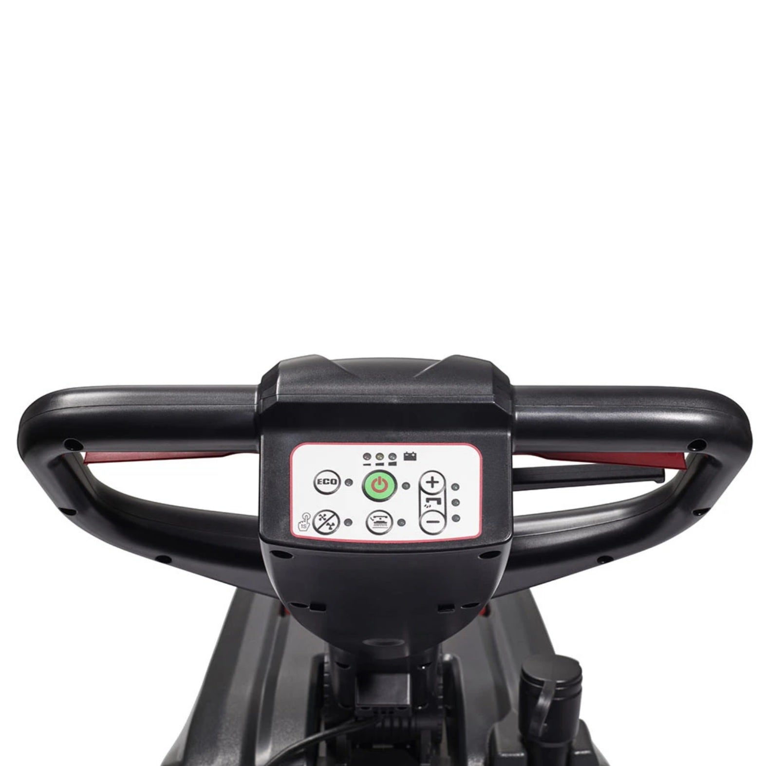 - Ergonomic handle reduces operator fatigue and can adjust to different operators; also reduces space requirements for transport, storage, and operation · Safety switches make it easy to control brush start and stop.