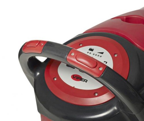 Other benefits of the VIPER AS510 include a reduced pushing force requirement and an ergonomic start/stop switch. Its squeegee is 790mm wide, its brush 510mm wide, with a speed of 150rpm. A scrubbing brush, batteries and charger are supplied with this model.